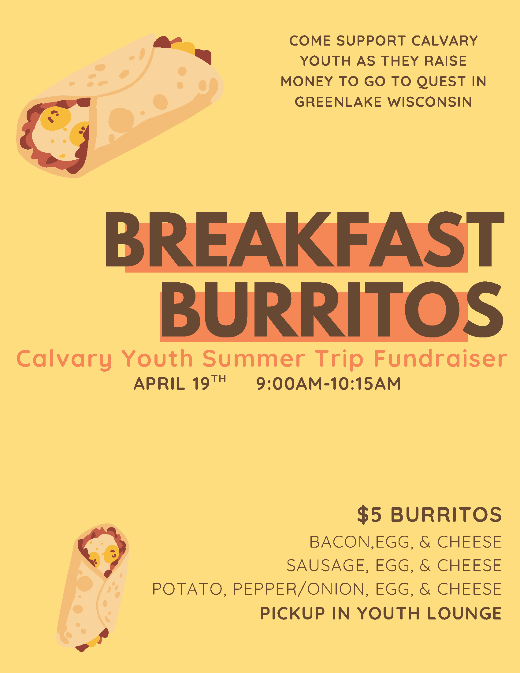Calvary Youth: Breakfast Burritos Fundraiser